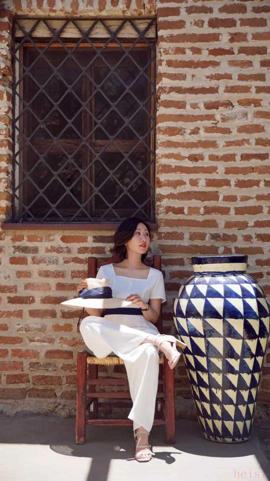 顏色非常夏天,而且也很好搭,因為有點米色,再加上側(cè)面的鏤空設計,特別顯腿長。▼