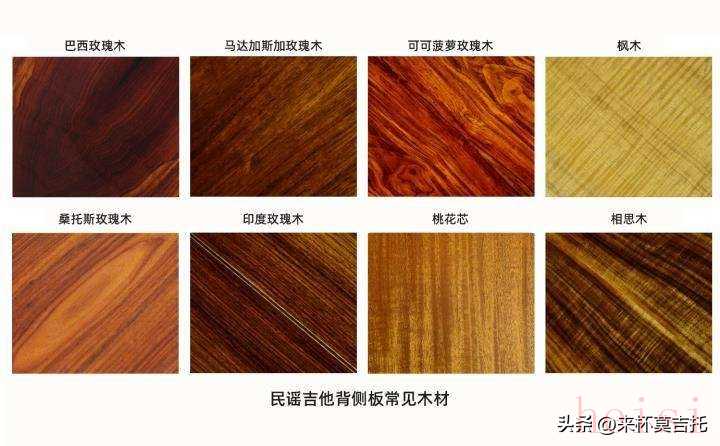 背側(cè)板主要起共振反射作用,影響音色的低頻和中頻表現(xiàn)。沙比利、桃花芯木背側(cè)板音色溫暖,中頻突出,適合彈唱;玫瑰木背側(cè)板低頻渾厚,高頻清晰,適合指彈和復雜曲目演奏。