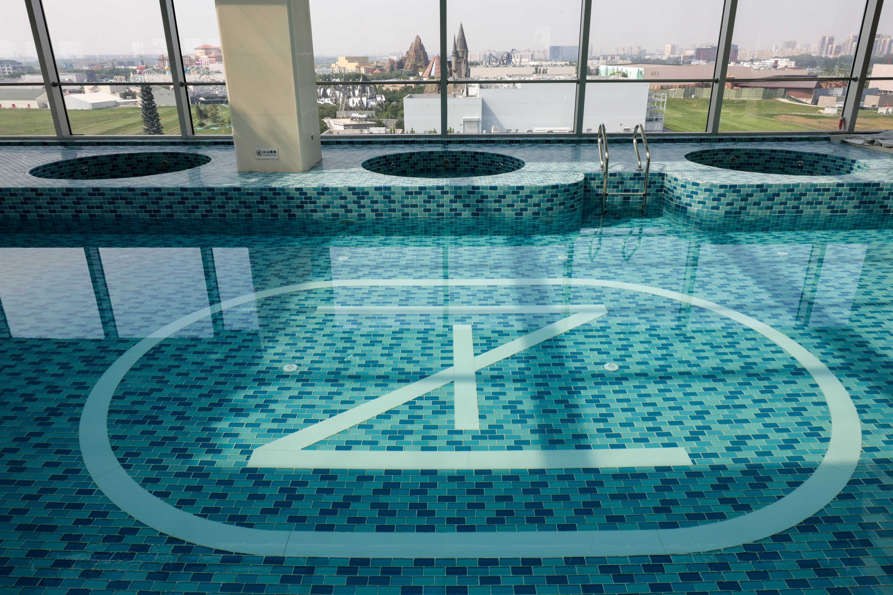 在灣里·諾嵐酒店無邊泳池可俯瞰北京環(huán)球度假區(qū)。新京報記者 王子誠 攝