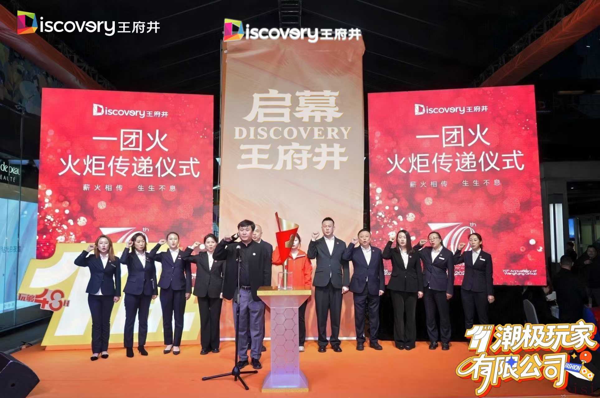 在全場整齊洪亮的倒數(shù)聲——“三、二、一”中,他們共同拉動手中的紅繩,伴隨著恢宏的音樂與絢麗的焰火,覆蓋在全新店招上的巨幅紅綢緩緩落下,“西安王府井Discovery”新標識耀世而出。這一刻,不僅是一個品牌的視覺升級,更是一次品牌內(nèi)核的涅槃重生,它象征著探索、創(chuàng)新與無限的未來,更是與西安這座城市共成長的承諾。