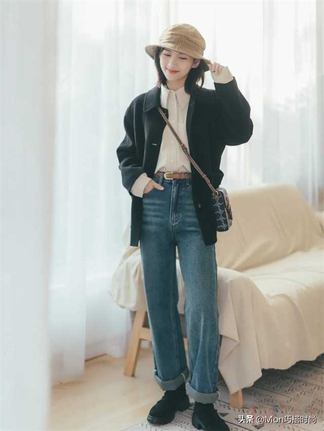 "為什么洋氣:" 直筒褲線條利落,能很好地修飾腿部線條,顯得人又高又瘦。它與大衣的廓形可以形成良好的對比,增加整體造型的層次感和大氣感。無論是搭配合身的西裝大衣還是略帶休閑感的外套,直筒褲都能平衡得很好。