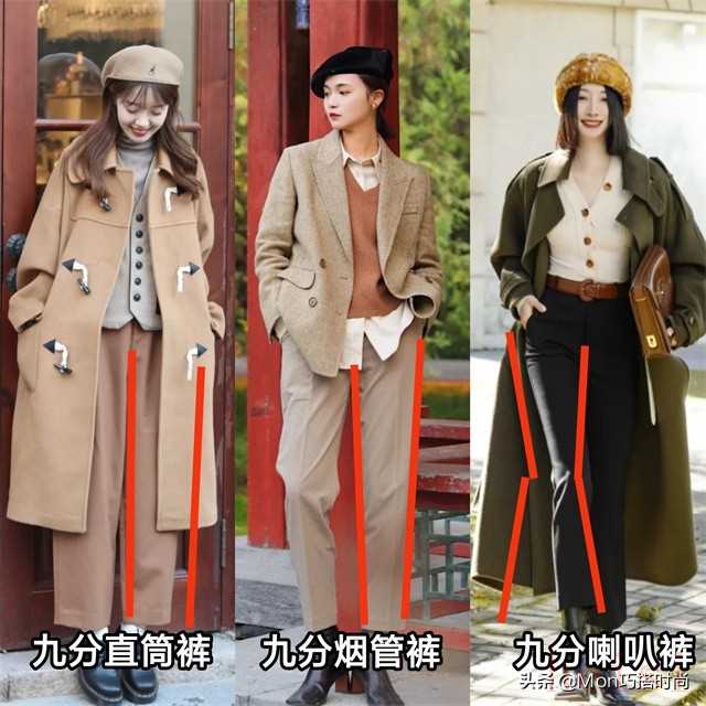 九分褲長通常在腳踝正上方2至3厘米位置,正好能露出最纖細的腳脖子,對微胖身材的女生也格外友好,長款大衣,短款大衣都能搭配。