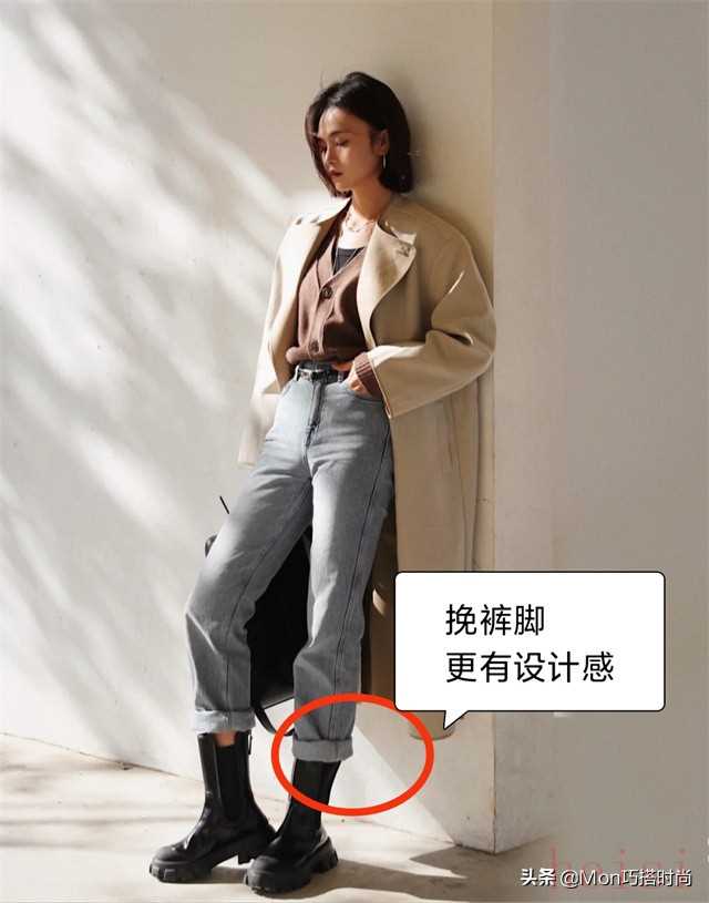 "為什么洋氣:" 闊腿褲自帶復古時髦感,能輕松打造出effortless chic(毫不費力的時髦)風格。它們能很好地隱藏腿部不足,同時增添女性的柔美和優(yōu)雅。搭配大衣時,特別是搭配長度在大腿中部的中長款或長款大衣,能形成“上短下長”的視覺效果