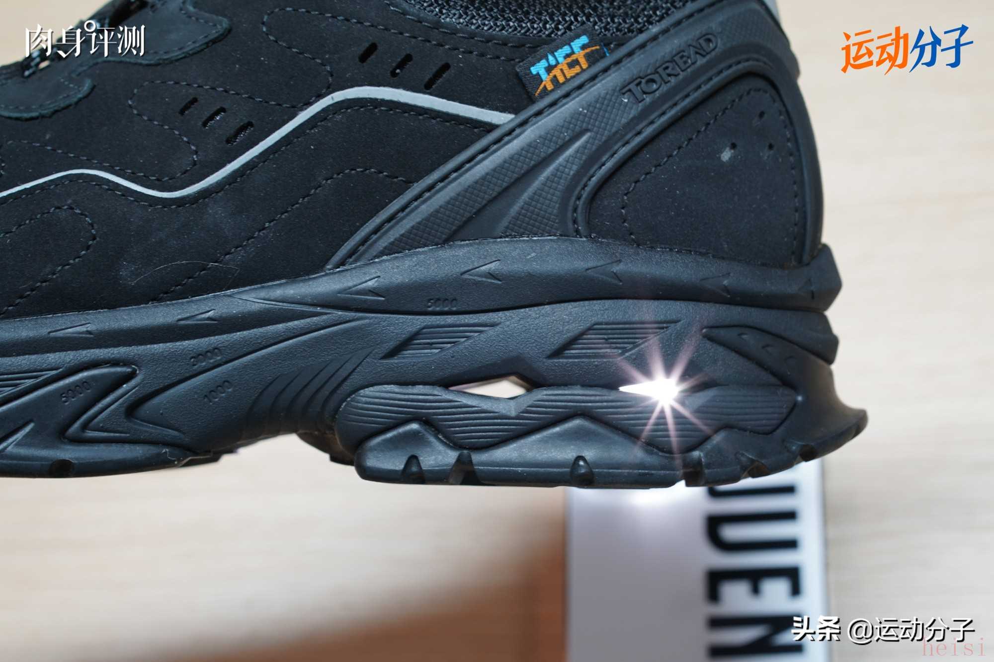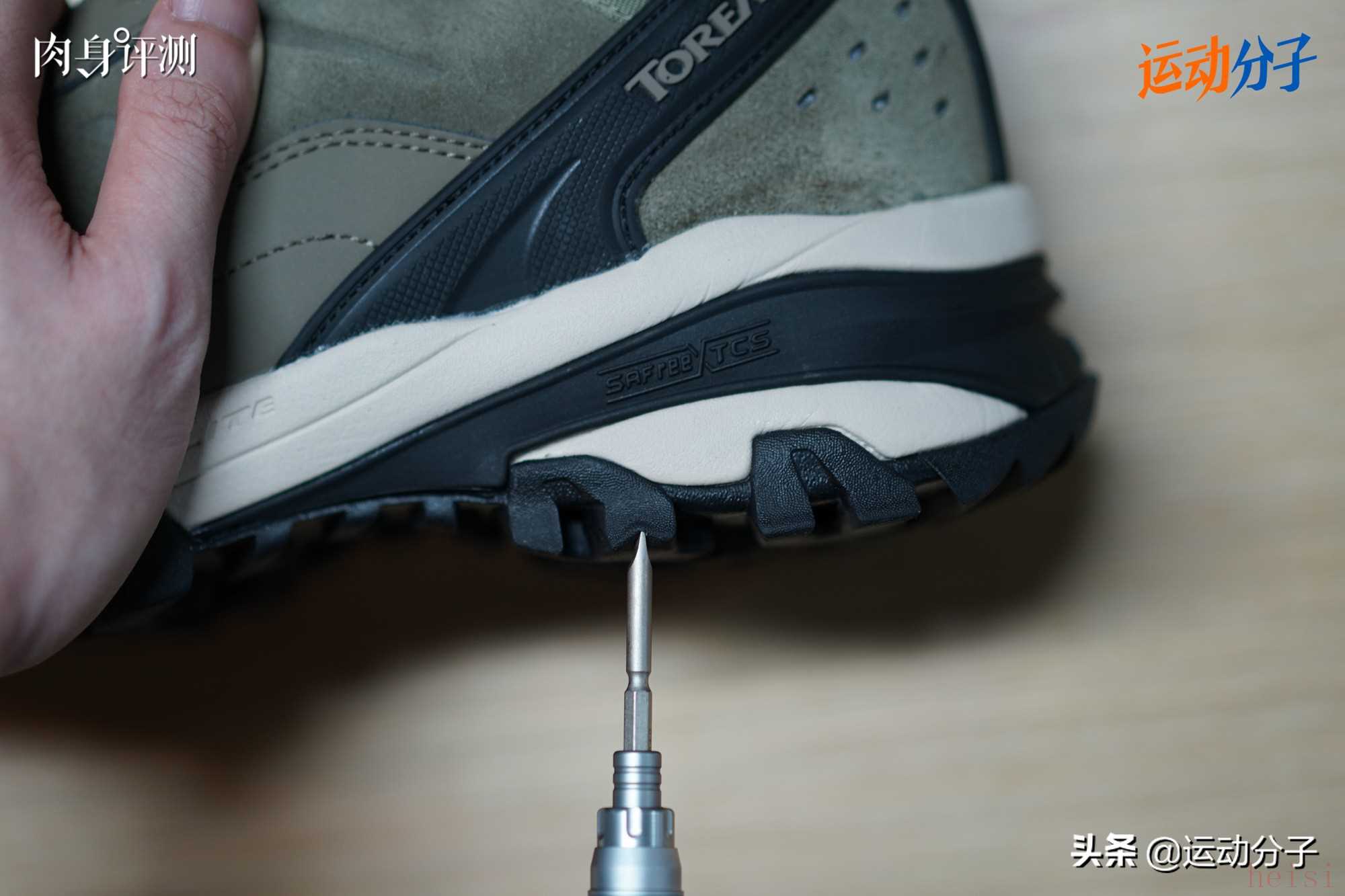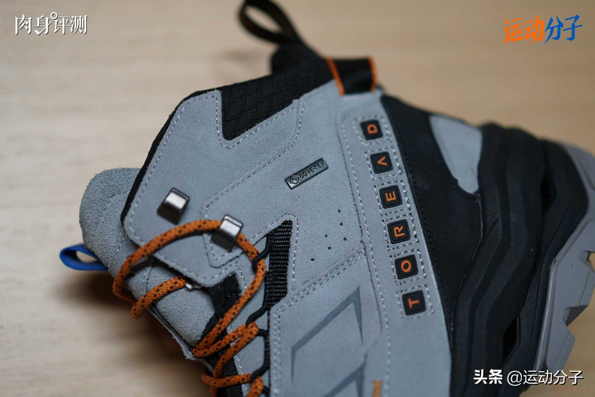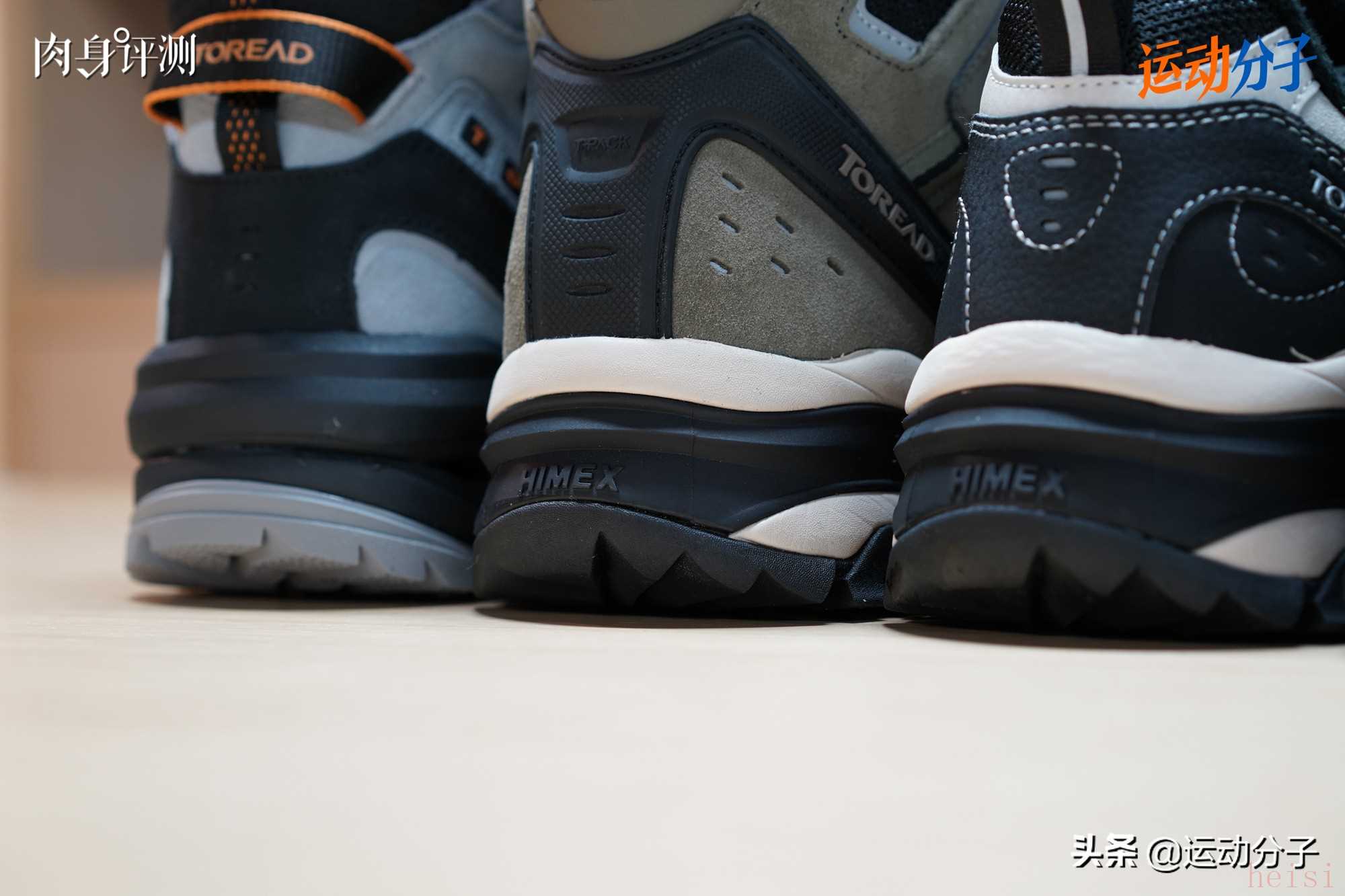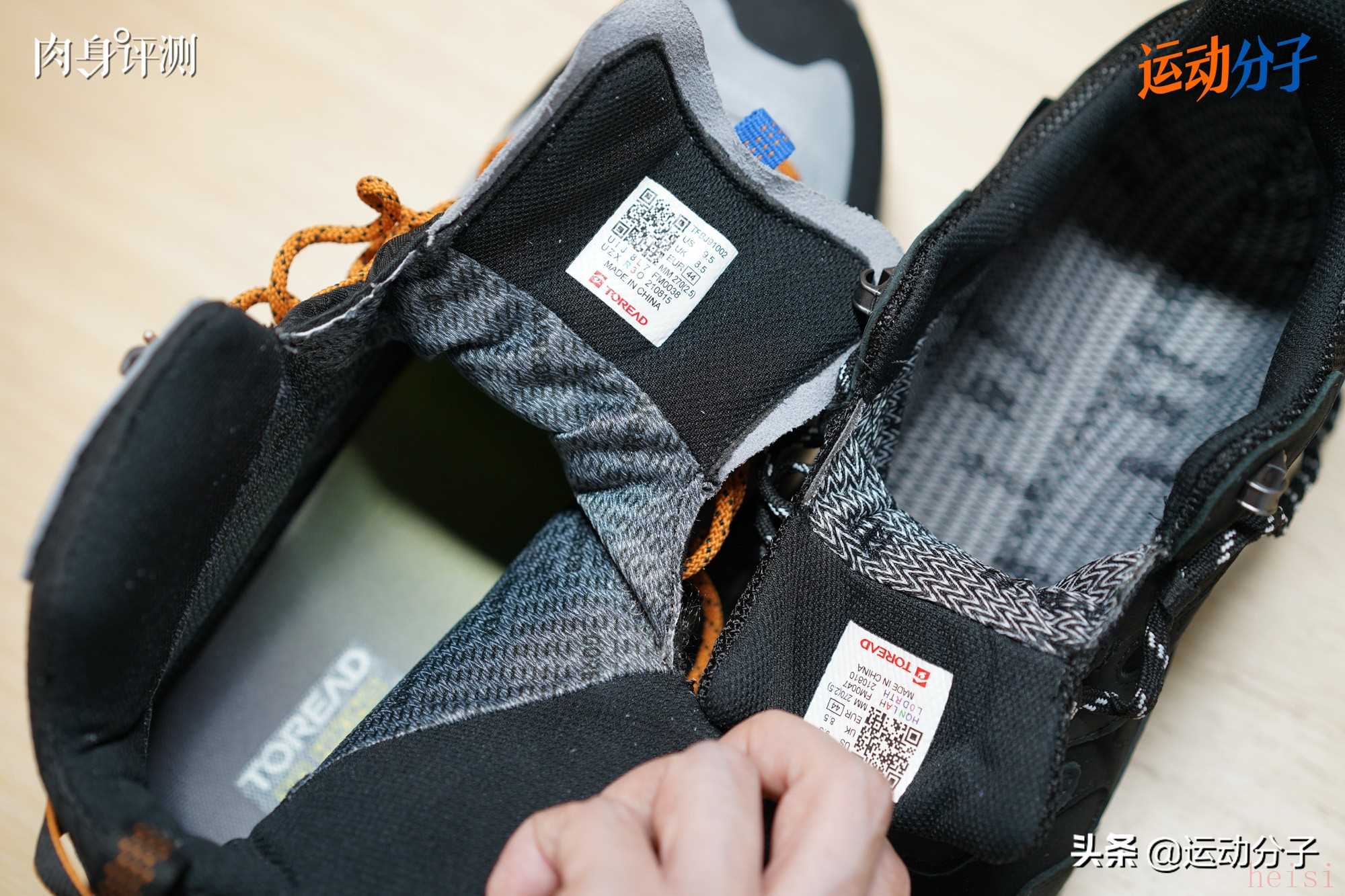 這雙最貴的探路者,還發(fā)現(xiàn)鞋幫側(cè)面的TOREAD處又做了額外的加強。配合后跟的硬質(zhì)支撐防止崴腳——刻意用后跟外側(cè)在斜坡滑步時,就能感受到這種支撐。