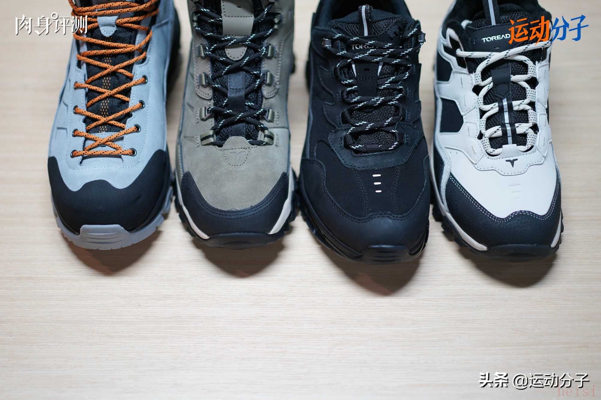 四雙鞋倆高幫倆低幫,都定位戶外徒步使用。幾點特征很明顯——