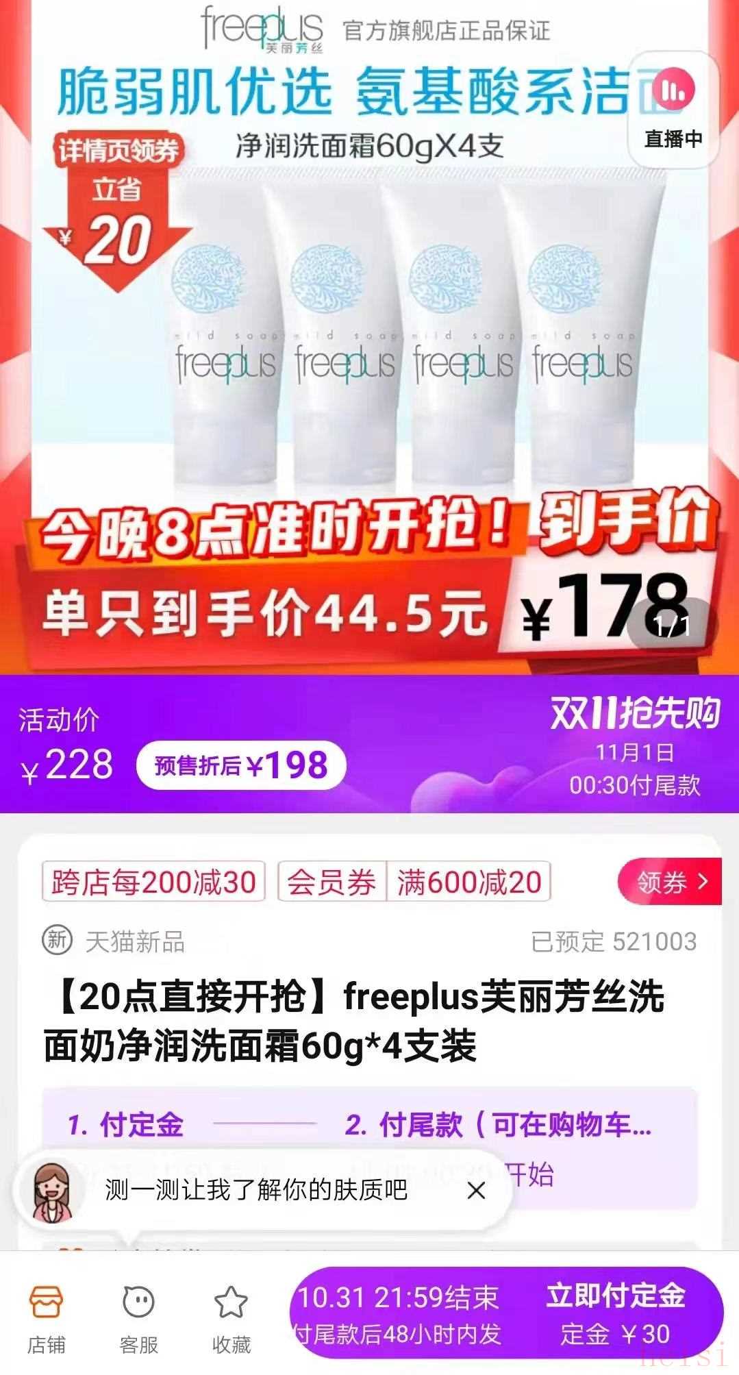 值得注意的是,芙麗芳絲Freeplus背后的電商運(yùn)營服務(wù)商亦是麗人麗妝。據(jù)麗人麗妝微信公眾號(hào)發(fā)布的消息,2021年天貓雙十一活動(dòng)中,其所運(yùn)營的芙麗芳絲天貓官方旗艦店在預(yù)售首日的14分鐘內(nèi)全店成交過億元,其中明星單品氨基酸系潔面4小時(shí)內(nèi)銷售逾320萬支,增幅超100%。同時(shí),芙麗芳絲曾連續(xù)5年蟬聯(lián)天貓雙11潔面類目榜首。