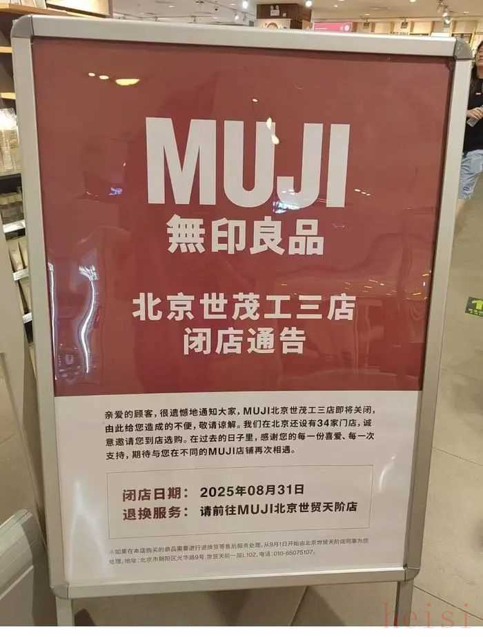 當(dāng)天,孫女士購(gòu)買(mǎi)了防曬服和保暖衣,總共花費(fèi)300元。新聞多一點(diǎn)無(wú)印良品多家門(mén)店將關(guān)閉近期,有來(lái)自北京、長(zhǎng)沙等多地的消費(fèi)者發(fā)現(xiàn),當(dāng)?shù)赜蠱UJI無(wú)印良品門(mén)店將閉店。有網(wǎng)友在社交媒體稱(chēng),MUJI無(wú)印良品在北京的世茂工三店將終止?fàn)I業(yè)。網(wǎng)友曬出門(mén)店張貼的“閉店通知”顯示,該門(mén)店閉店時(shí)間為2025年8月31日,消費(fèi)者若有退換貨服務(wù)可往MUJI北京世貿(mào)天階店,“很遺憾地通知大家,MUJI世茂工三店即將關(guān)閉,由此給您造成的不便,敬請(qǐng)諒解。我們?cè)谶@個(gè)城市還設(shè)有34家門(mén)店,誠(chéng)意您到店選購(gòu)。”