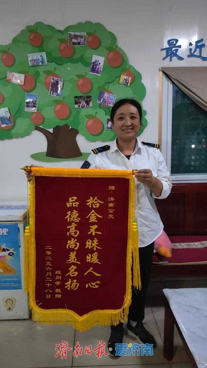 失主段同學(xué)送錦旗,感謝B100路駕駛員陳麗拾金不昧。