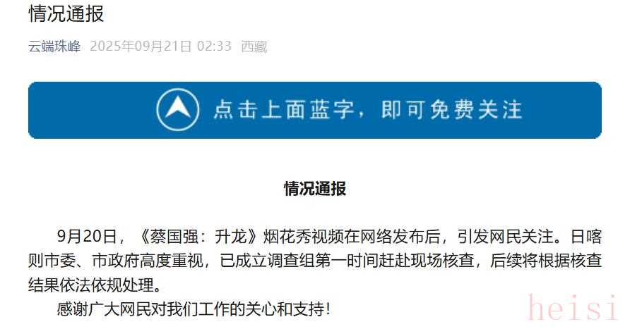 隨著事件不斷發(fā)酵,9月21日凌晨,日喀則市互聯(lián)網(wǎng)信息辦公室發(fā)布情況通報(bào)稱,日喀則市委、市政府高度重視,已成立調(diào)查組第一時(shí)間趕赴現(xiàn)場(chǎng)核查,后續(xù)將根據(jù)核查結(jié)果依法依規(guī)處理。
