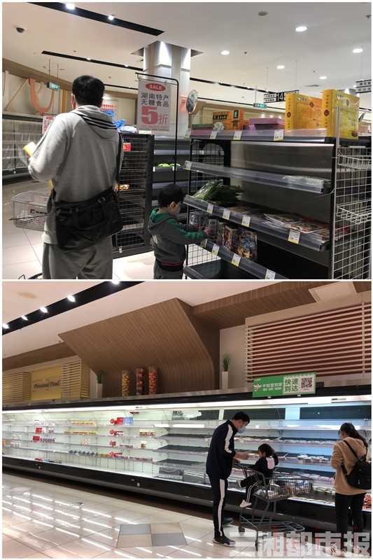 (3月24日,市民正在平和堂超市奧克斯廣場(chǎng)店選購(gòu)商品,超市內(nèi),大部分貨架已空置。記者 黃亞蘋 攝)