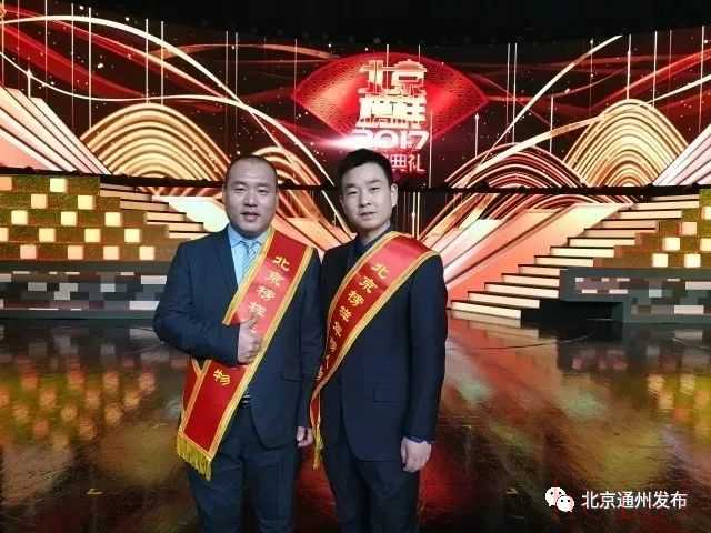 在“2017北京榜樣”頒獎典禮上,楊帆(左)、趙小偉(右)接受表彰。