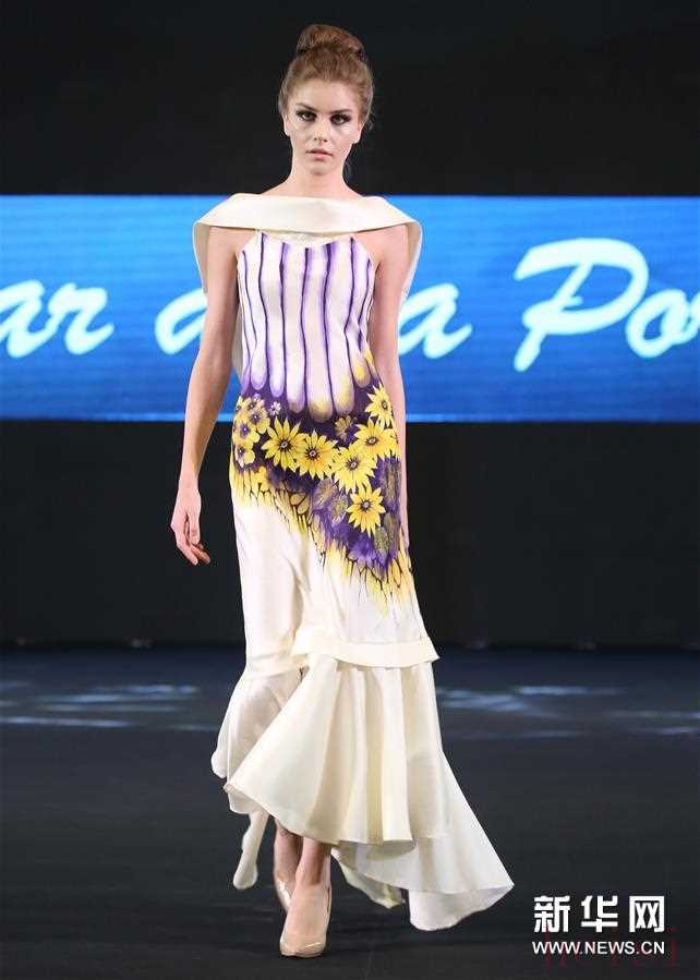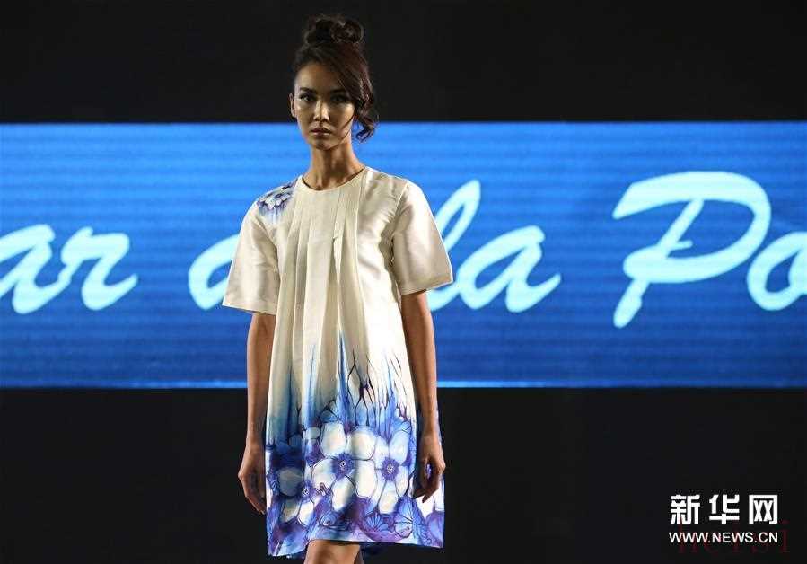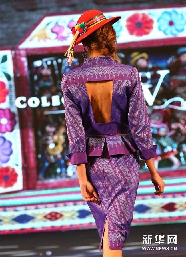 11月18日,在泰國(guó)曼谷舉行的泰絲國(guó)際時(shí)裝周上,模特展示秘魯設(shè)計(jì)師卡洛斯·比希爾設(shè)計(jì)的服裝。 新華社/歐新