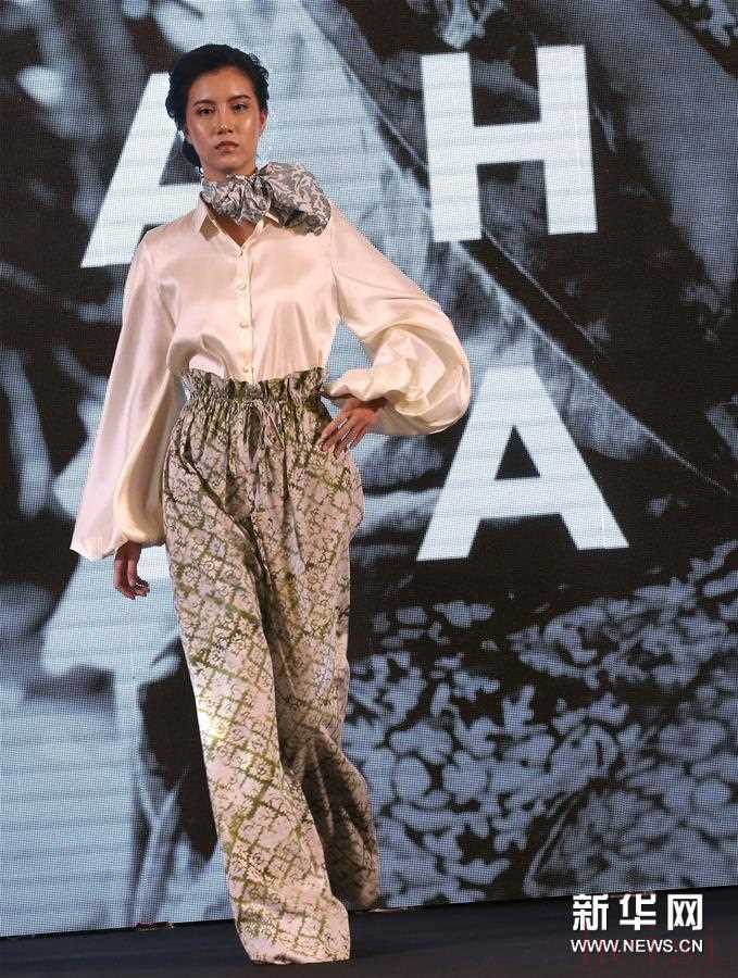 11月18日,在泰國(guó)曼谷舉行的泰絲國(guó)際時(shí)裝周上,模特展示馬來(lái)西亞品牌Ruzz Gahara的服裝。 新華社/歐新