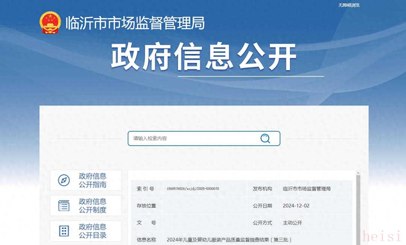 根據(jù)您提供的信息,山東省臨沂市市場(chǎng)監(jiān)督管理局發(fā)布了2024年兒童及嬰幼兒服裝產(chǎn)品質(zhì)量監(jiān)督抽查結(jié)果(第三批)。