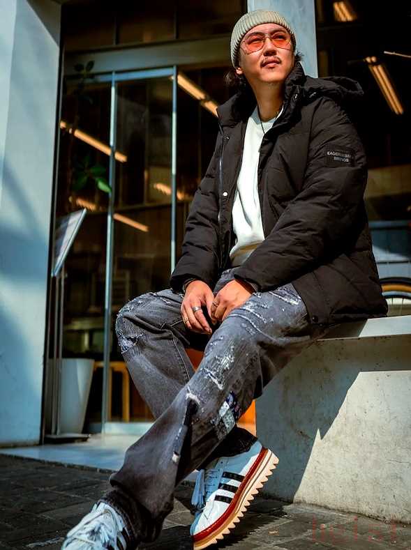 日韓街拍里短款羽絨服+高腰褲的穿法,本質(zhì)是“把腿線強行提高7厘米”,腿長一拉長,年齡就往下掉,雜志寫成“減齡”,翻譯過來就是“讓你繼續(xù)相信能和小姑娘喝咖啡”。
