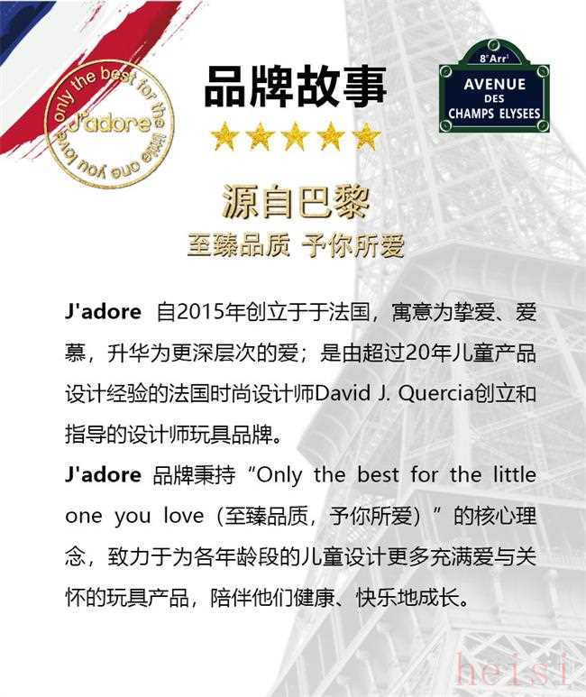 J'adore起源于法國(guó),寓意為摯愛(ài),愛(ài)慕,升華為更深層次的愛(ài),致力于為各個(gè)年齡段孩子提供簡(jiǎn)約,高價(jià)值的經(jīng)典益智類玩具;收獲來(lái)自法國(guó),德國(guó)和美國(guó)在內(nèi)的多個(gè)國(guó)家的粉絲,在玩具市場(chǎng)上展現(xiàn)出極具活力的表現(xiàn),源自新穎的設(shè)計(jì)和不斷創(chuàng)新的產(chǎn)品,并且?guī)Ыo無(wú)數(shù)家庭歡樂(lè)和幸福。