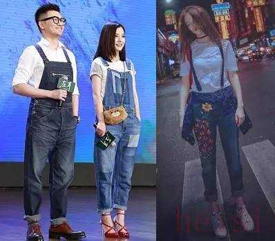 連曾經(jīng)的“時(shí)尚殺手”趙薇穿起背帶褲來也青春洋溢,站在同樣穿著背帶褲的五阿哥旁邊,兩個(gè)人仿佛像是出來宣傳《還珠格格》似得↓