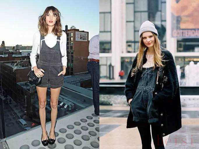 "短款上衣搭配:" 超短上衣+背帶褲,是打造“18歲”感的利器,比例絕佳。