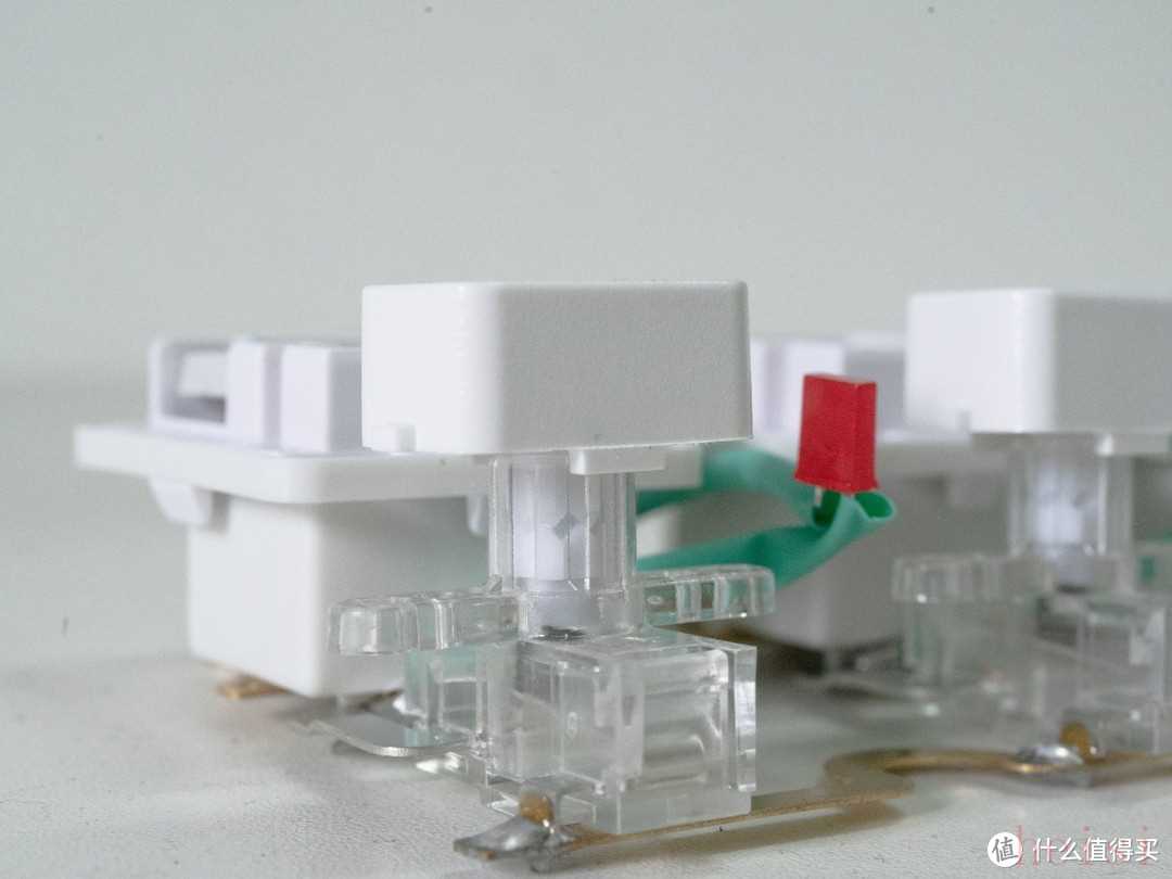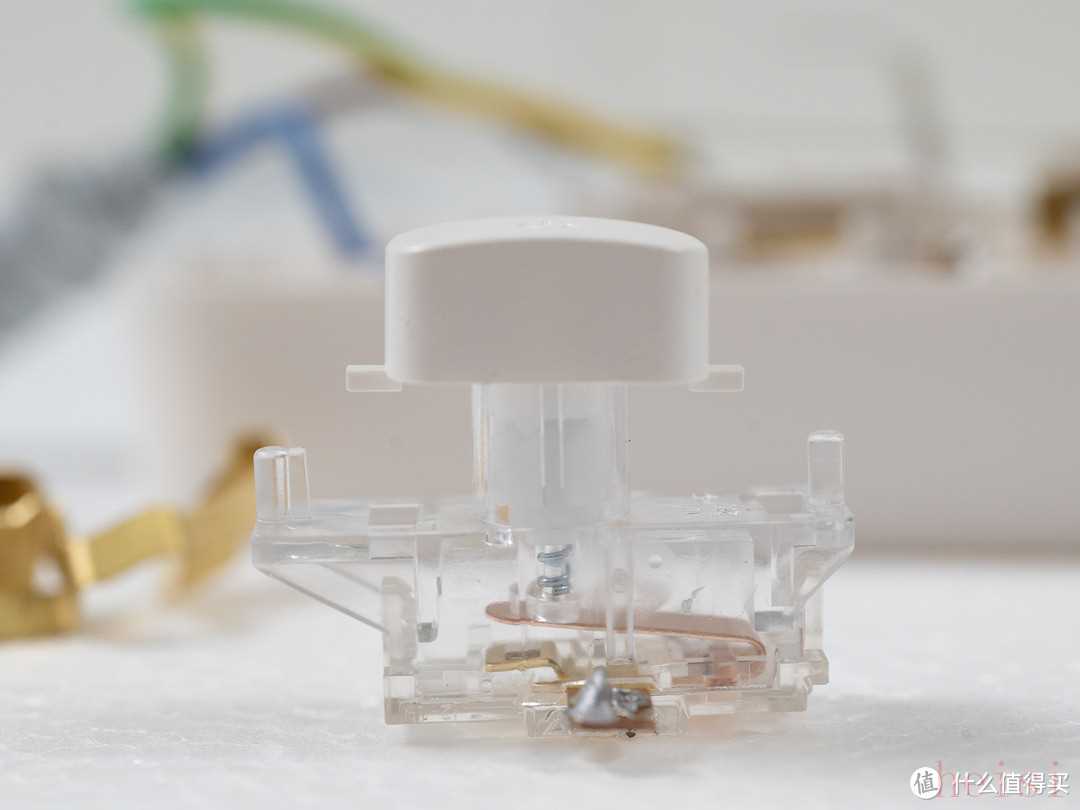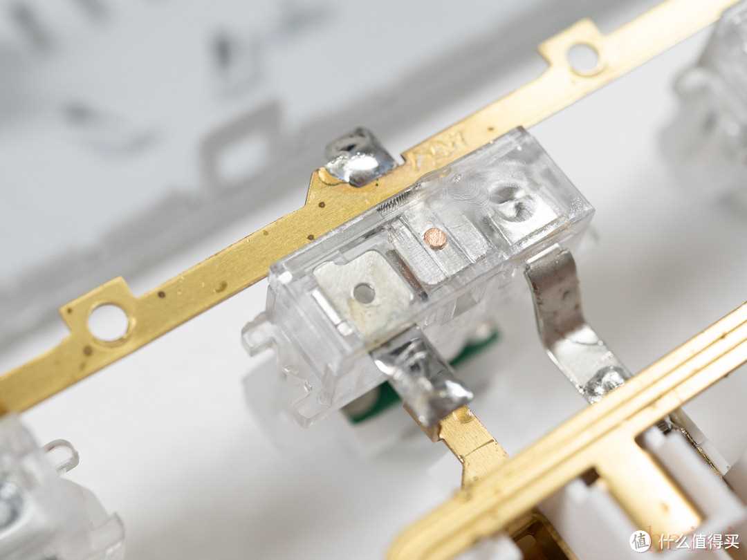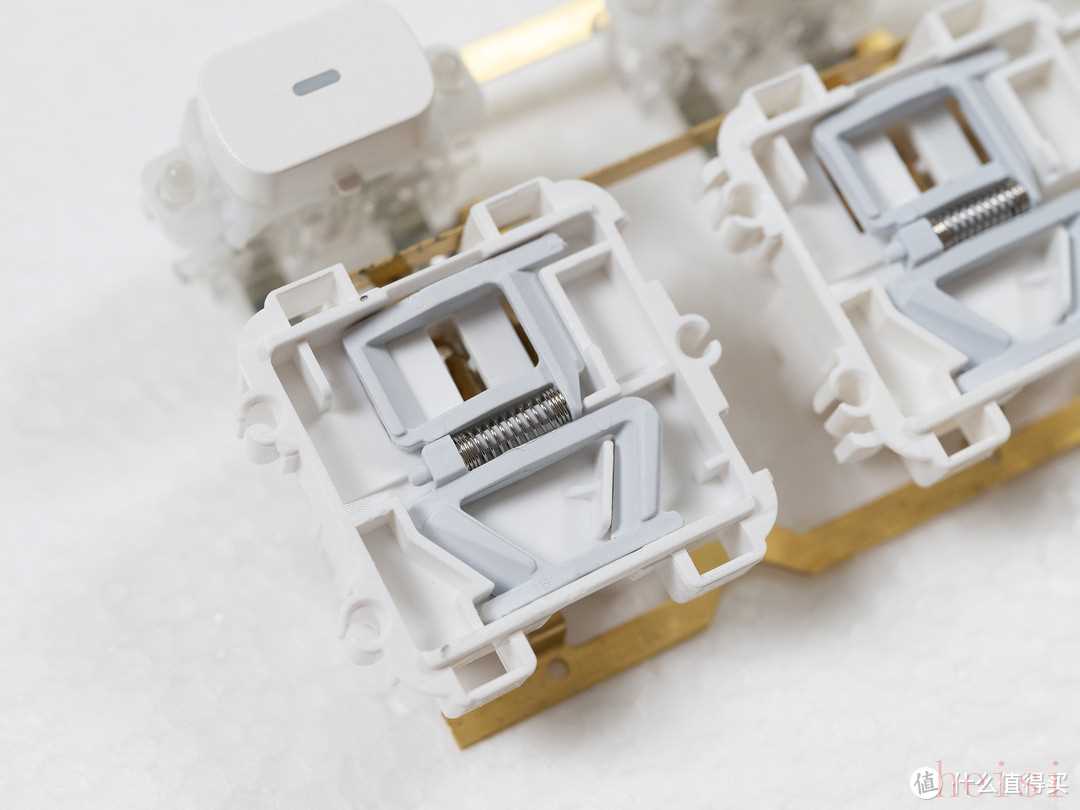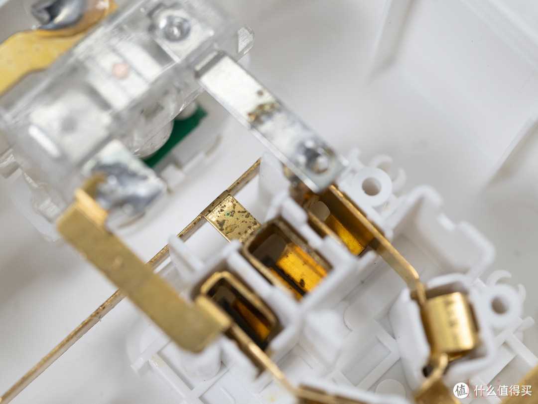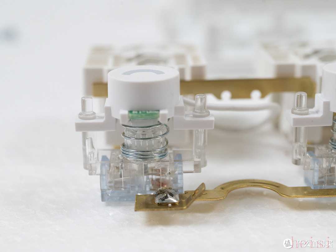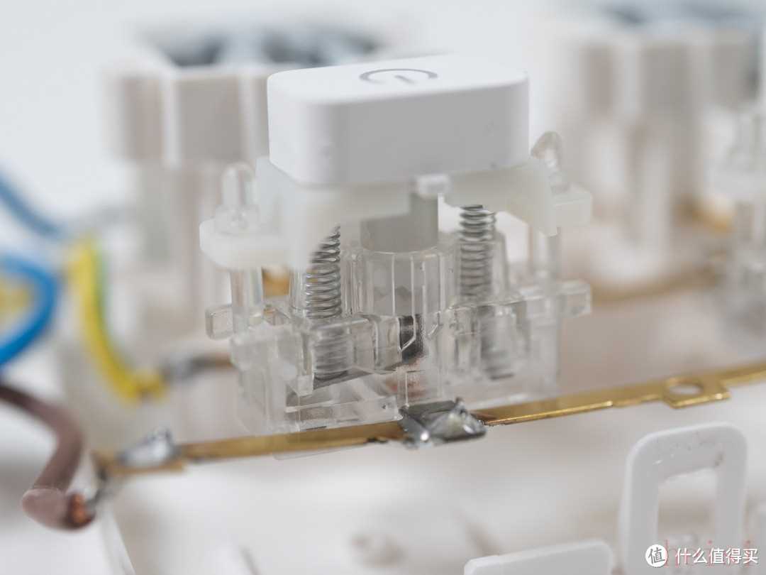 開(kāi)關(guān)結(jié)構(gòu)特寫(xiě),可以明顯看到彈簧是上疏下密設(shè)計(jì)的,算是漸進(jìn)型彈簧。