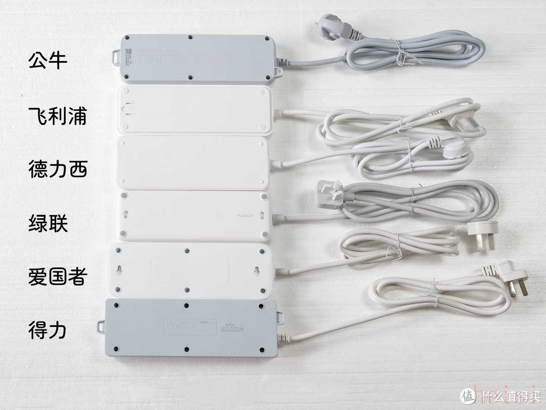線(xiàn)長(zhǎng)對(duì)比則最有意思了,公牛、德力西、飛利浦、綠聯(lián)、愛(ài)國(guó)者都標(biāo)注1.8米,實(shí)際線(xiàn)材長(zhǎng)度參差不齊。得力標(biāo)注是2米,可是標(biāo)注1.8米的綠聯(lián)卻和它差不多。這種差異,都怪排插廠(chǎng)商對(duì)于線(xiàn)長(zhǎng)沒(méi)有一個(gè)統(tǒng)一的定義。有些產(chǎn)品是按照總長(zhǎng)標(biāo)注、有些是按照線(xiàn)纜長(zhǎng)度標(biāo)注。