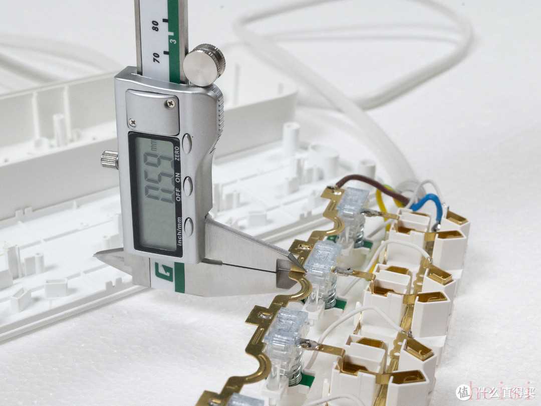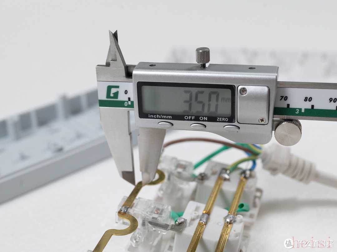 粗略看各個(gè)排插的插孔差不多,測(cè)了一下是有區(qū)別的。大部分間距都在27mm,唯獨(dú)愛(ài)國(guó)者是30mm的。插孔間距大,插大體積插頭時(shí),大體積插頭就不容易遮擋臨近的插孔,愛(ài)國(guó)者的做法很值得其他廠(chǎng)商跟進(jìn)。