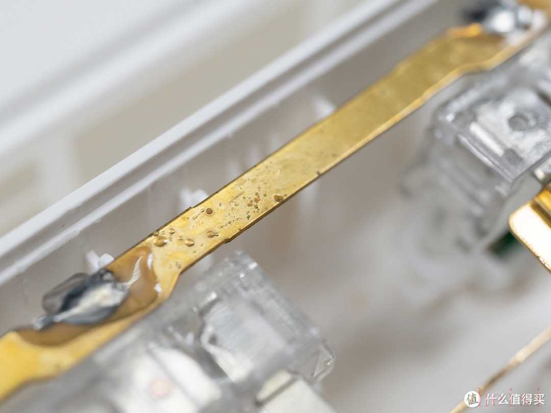 開(kāi)關(guān)是焊錫固定的,能看到有防氧化油的使用。