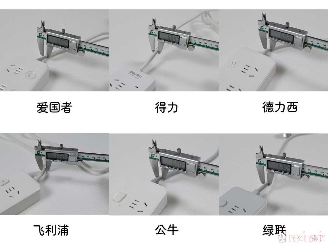 線(xiàn)徑這種沒(méi)標(biāo)注出來(lái)的,差異倒是很小。老牌廠(chǎng)商,例如愛(ài)國(guó)者(突破代工)、德力西、公牛基本是6.8mm。飛利浦、得力、綠聯(lián)就是小一點(diǎn)的。
