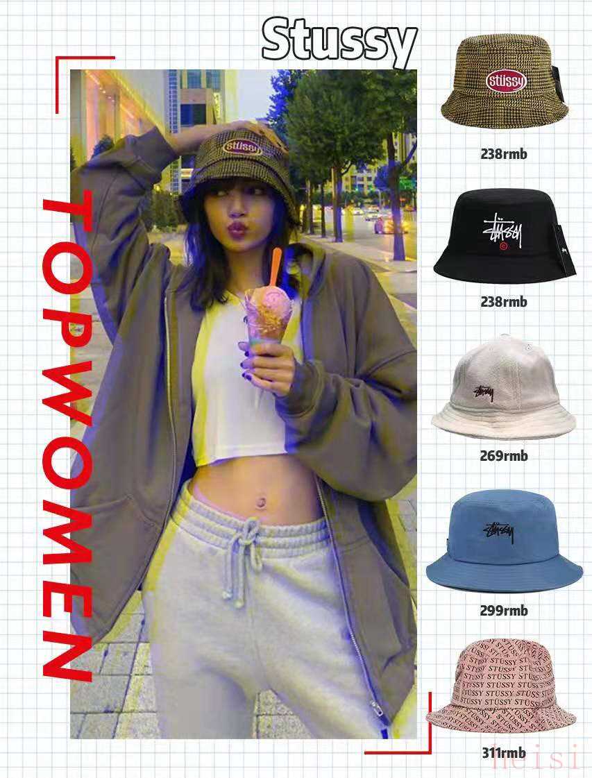 除了鴨舌帽以外,漁夫帽也是明星們選擇比較多的,在女星里面倪妮應(yīng)該是最喜歡用漁夫帽凹造型的。Stussy這個品牌的帽子設(shè)計感都比較簡單,就是簡單的logo設(shè)計配上純色,這樣的處理給穿搭風格留下了很大的空間。