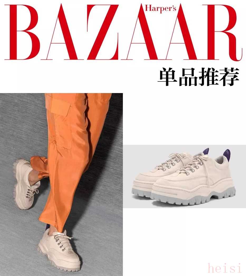 Eytys這款老爹鞋特別之處在于兩個(gè)底,看上去可能更厚重,搭配上粉色的鞋面輕盈不少,穿上女子力十足!