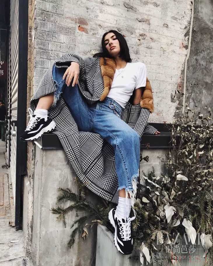 但搭配能露腳踝的九分褲更佳,充分利用這款老爹鞋側(cè)面低的優(yōu)勢,視覺把腿拉長~