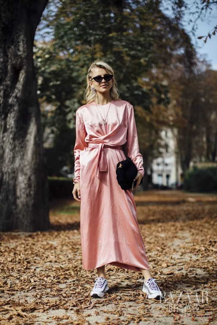 一條絲緞長裙飄逸輕盈,踩上Nike Air Max 95款老爹鞋,讓優(yōu)雅與休閑剛?cè)岵?jì),實(shí)在是傾倒本芭~