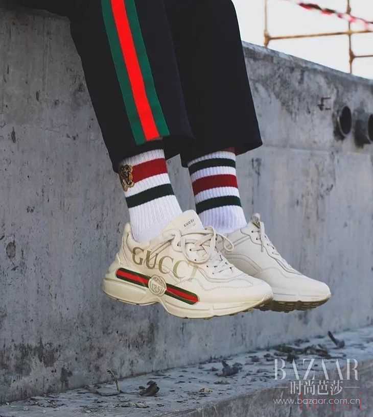 Gucci的老爹鞋可以說是丑球鞋流行起來的源頭呢~這款Gucci的logo讓鞋子更帶復(fù)古感!