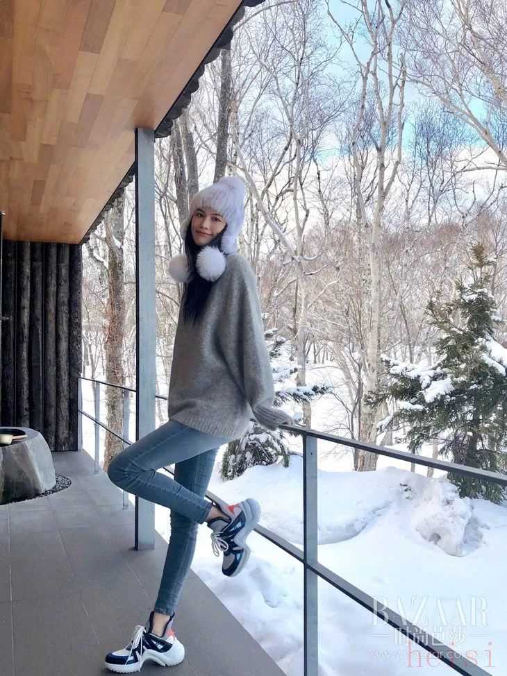 何仙姑同樣是一身簡潔裝扮,灰色毛衣和丹寧褲,踩上Archlight鞋,感覺分分鐘可以拍大片!