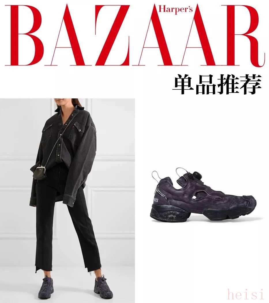 時(shí)髦的宋茜穿上的是VETEMENTS與Reebok聯(lián)名的老爹鞋,老爹鞋能讓一身皮衣立馬休閑起來,令造型時(shí)髦得毫不費(fèi)力~