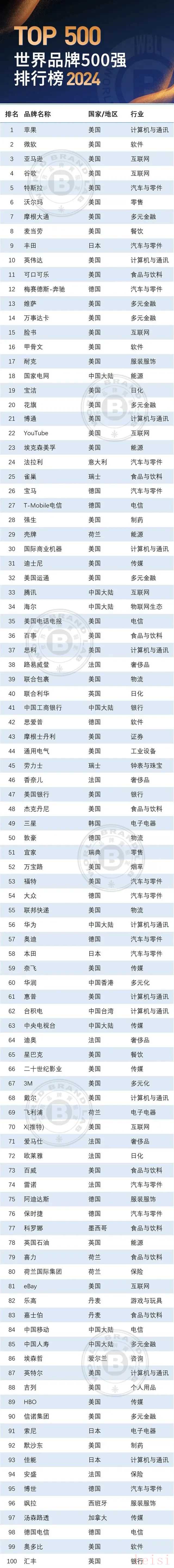 2024年度(第二十一屆)《世界品牌500強》完整名單