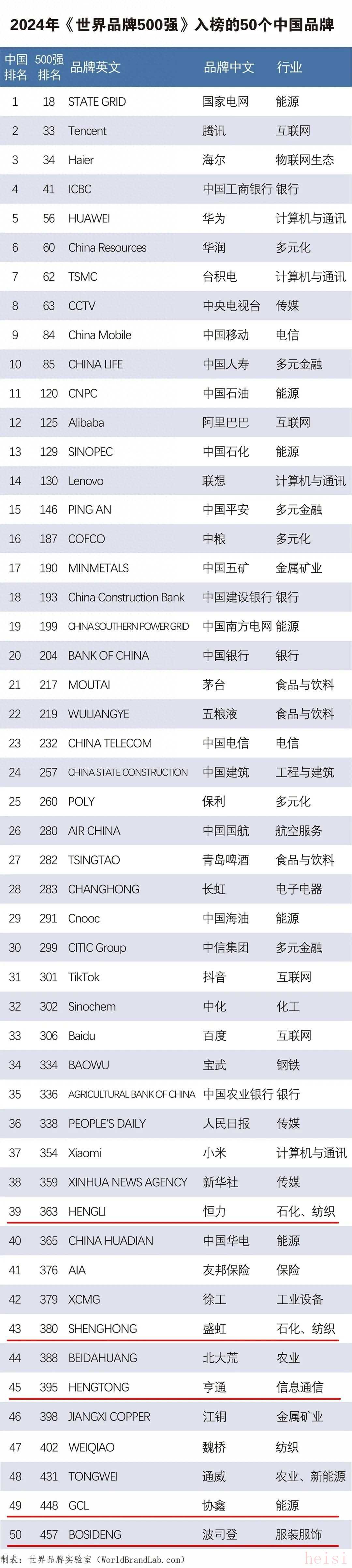 "世界品牌實(shí)驗(yàn)室 (World Brand Lab)" 發(fā)布的《世界品牌500強(qiáng)》