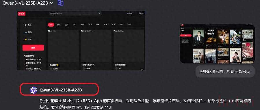 智東西將一張小紅書網(wǎng)頁版的截圖上傳給Qwen3-VL,不過,首先遇到的是其安全機(jī)制。模型認(rèn)為直接復(fù)制小紅書的設(shè)計(jì)有侵權(quán)風(fēng)險(xiǎn),多次拒絕此類任務(wù)。