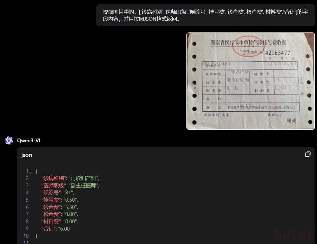 例如,官方Demo中,這張實(shí)拍的掛號(hào)費(fèi)收據(jù)字跡模糊,還有重疊,肉眼看著都有些費(fèi)勁。但模型能準(zhǔn)確識(shí)別字樣,并根據(jù)指定格式輸出。