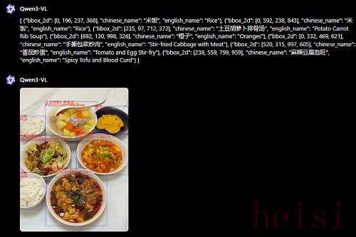Qwen3-VL也具備識(shí)別萬物的能力,名人、美食、動(dòng)植物、汽車品牌、動(dòng)漫角色等均在其知識(shí)儲(chǔ)備范圍內(nèi)。上傳一張圖片,模型就能準(zhǔn)確報(bào)菜名,還是帶定位框的那種。