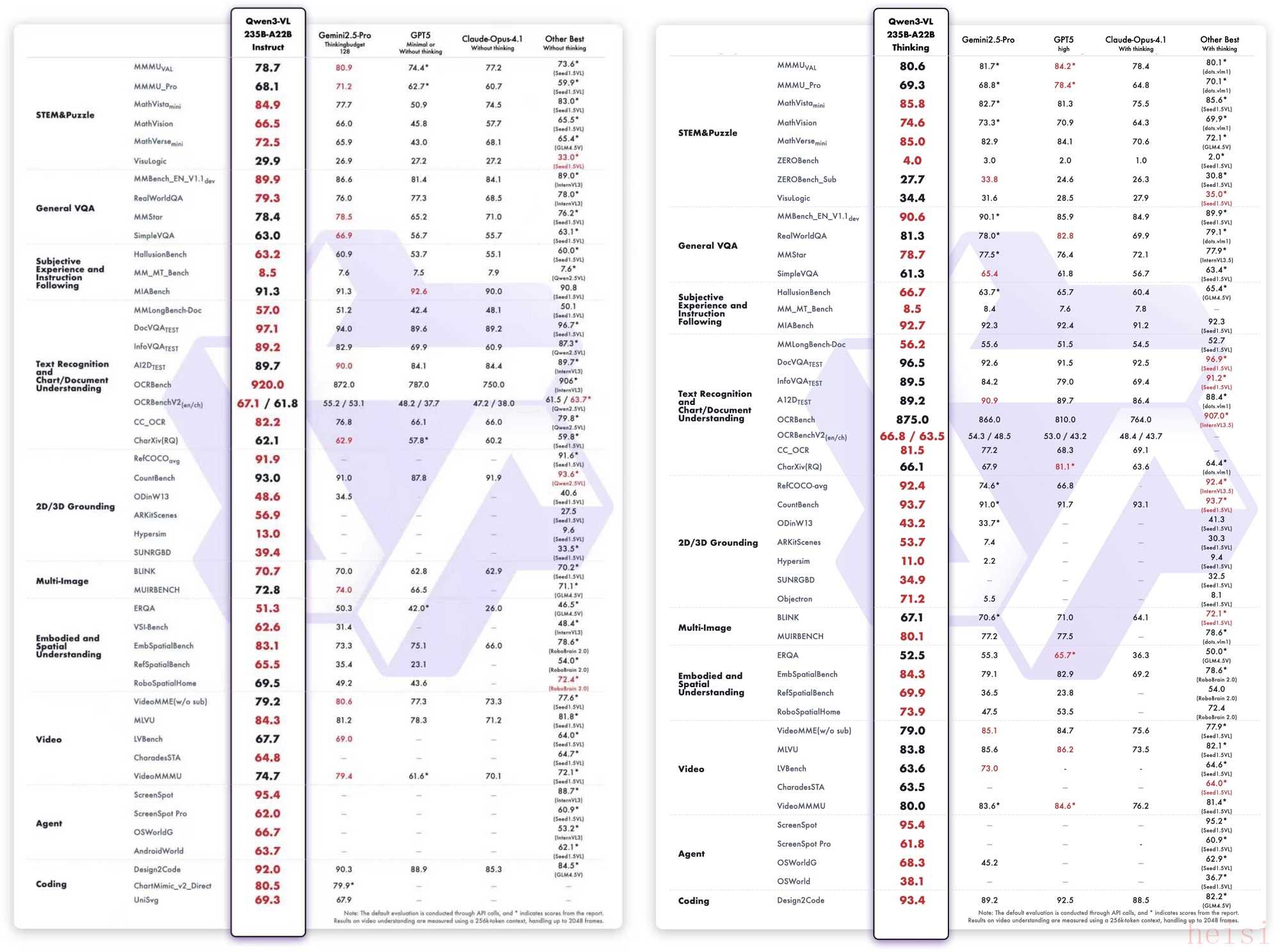 Qwen3-VL-235B-A22B-Instruct等非推理模型得分,右側(cè)為
