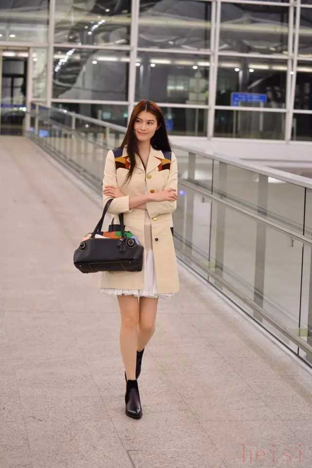 “何仙姑”身著全套COACH 2016春夏系列套裝,手拎Coach Outlaw手袋從香港機場到紐約,淺色風衣配白色連身裙春意濃濃,亮白的肌膚、高挑的身材,美得自然而又大氣。
