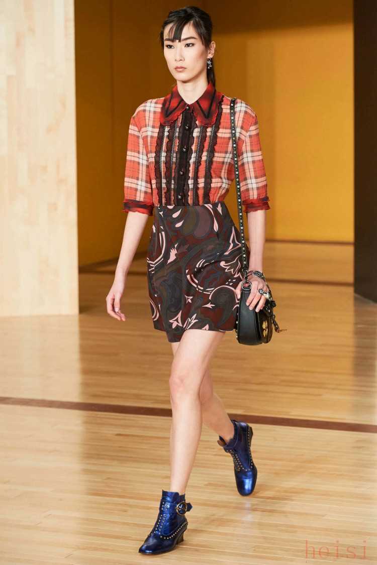 曾充滿懷舊風情的格紋襯衫,不論是紋路﹑寬窄還是組合排列,彷佛擁有無限可能,這次在coach的舞臺上再次出現(xiàn),想必這次格紋襯衫在今年必定會繼續(xù)走俏,深沉濃郁的色調組合,又帶著玩味的浪漫氣息,前襟的蕾絲邊花紋更增添學院氣息。