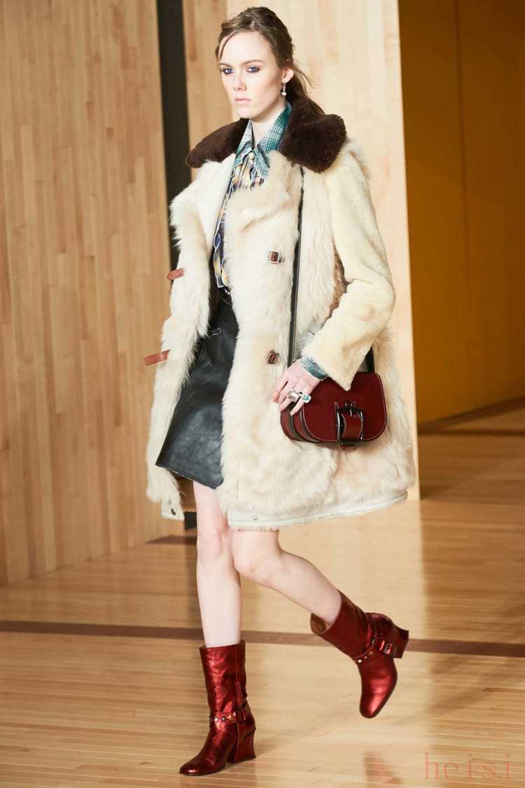 復古的皮草外套,是冬季是最溫暖的歸屬,放佛一杯熱咖啡。很多女性為了凹造型,即使在寒風中也會排斥臃腫大衣,coach則反其道而行,大衣式的領子和紐扣設計,脫離羊羔絨的厚重感,更能修飾身型。