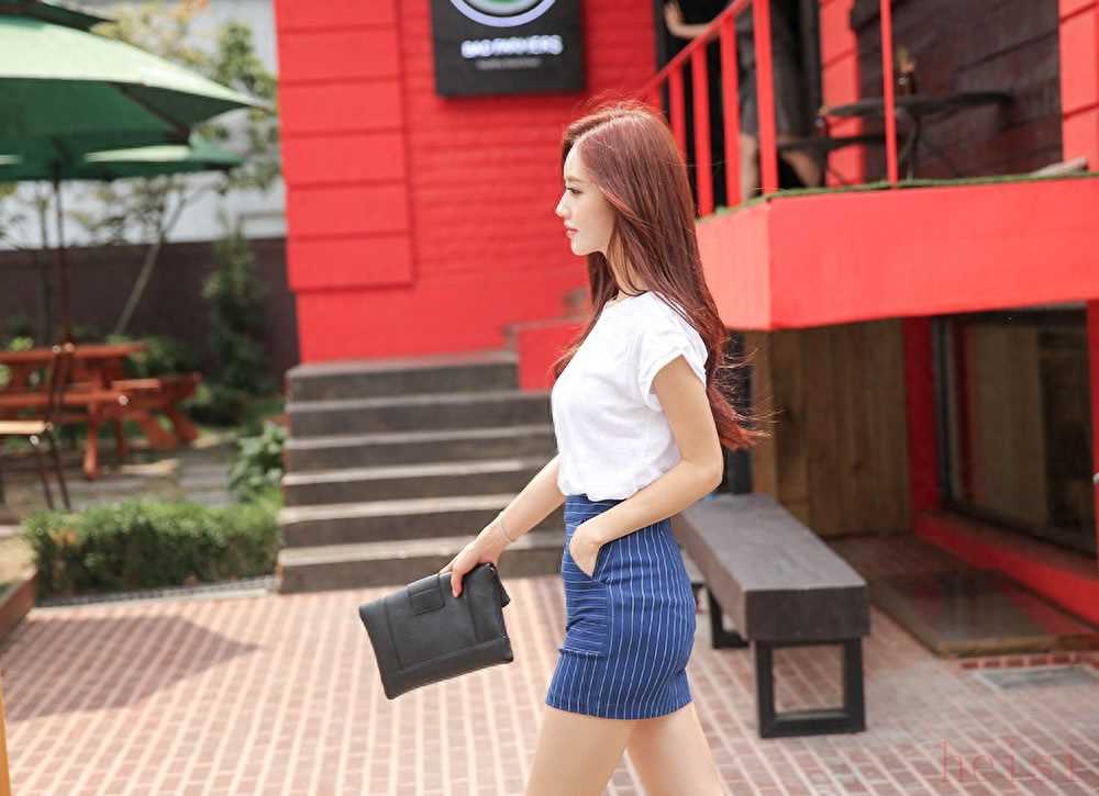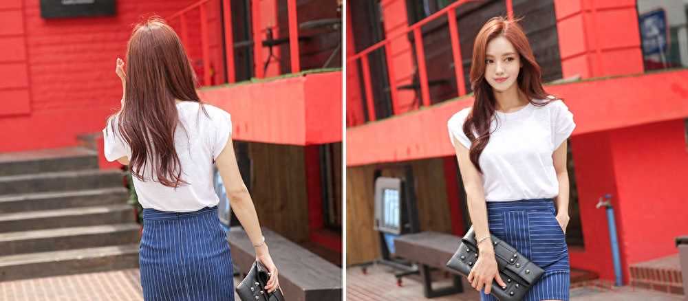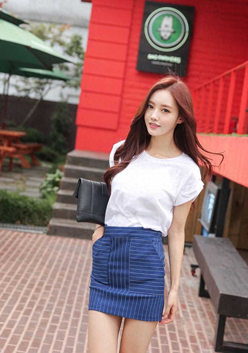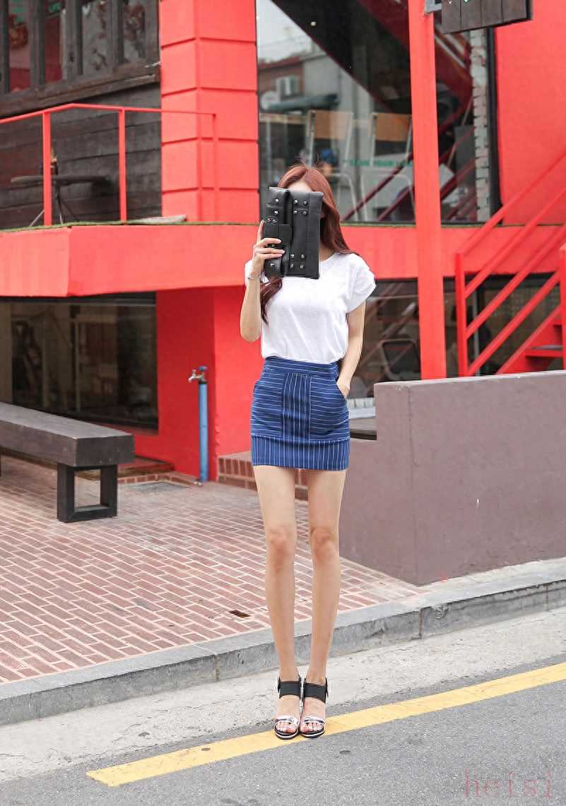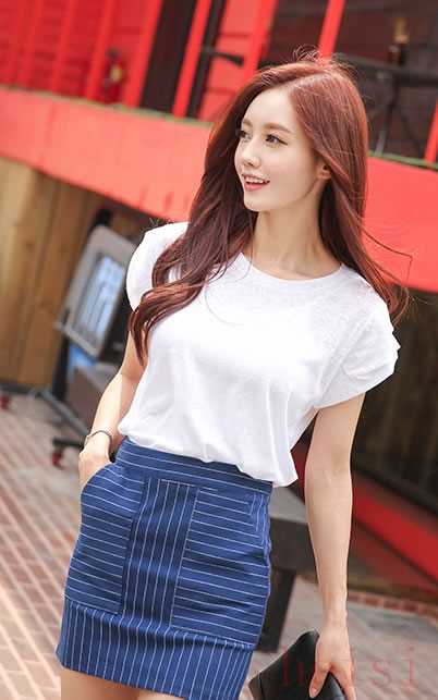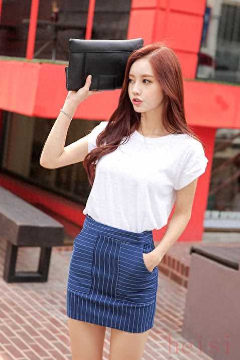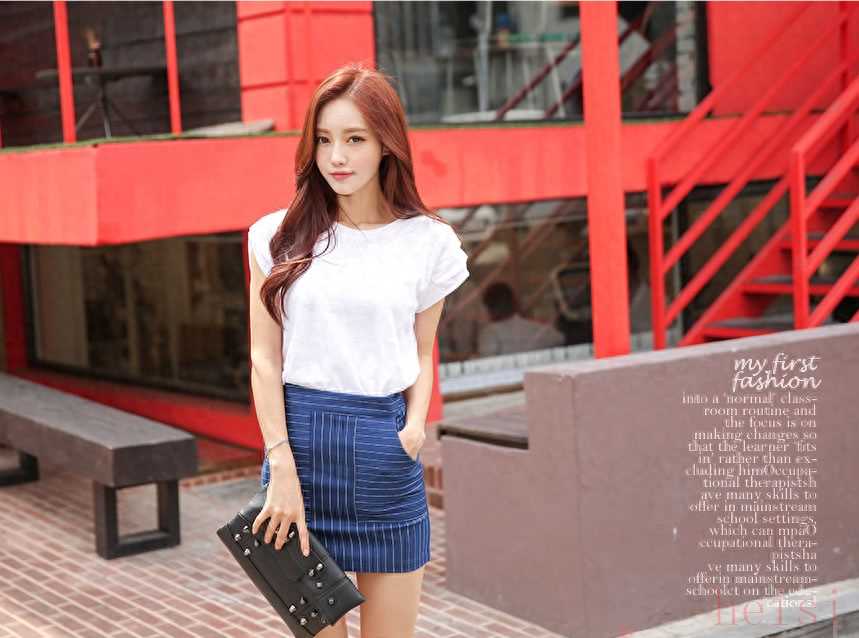"短裙:" 純白色A字短裙 或 純白色直筒短裙。選擇面料挺括或垂墜感線條簡潔。