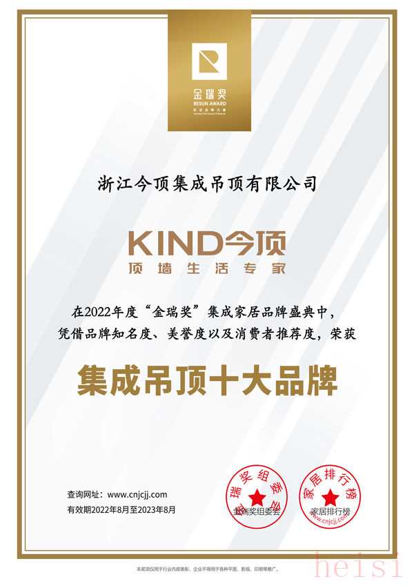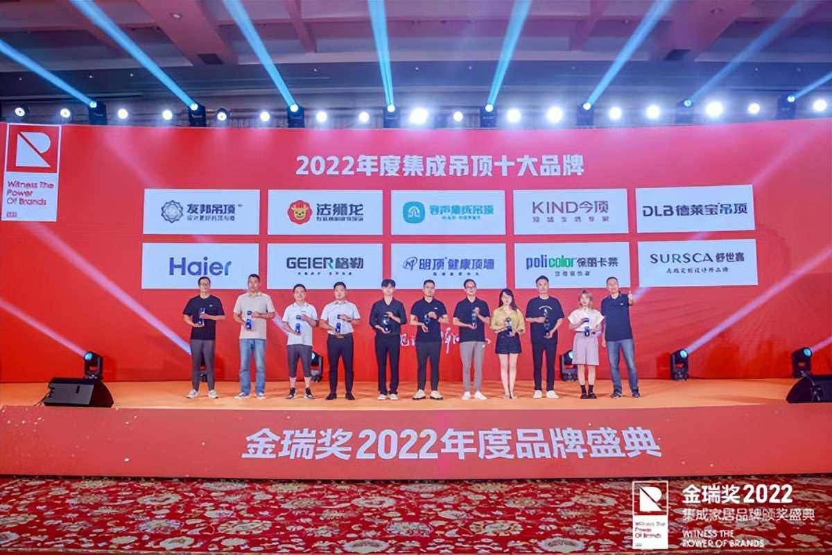 在“2022品牌之夜”金瑞獎集成家居品牌頒獎盛典上,今頂憑借過硬的企業(yè)實力和品牌影響力榮獲“2022年度集成吊頂十大品牌”稱號。