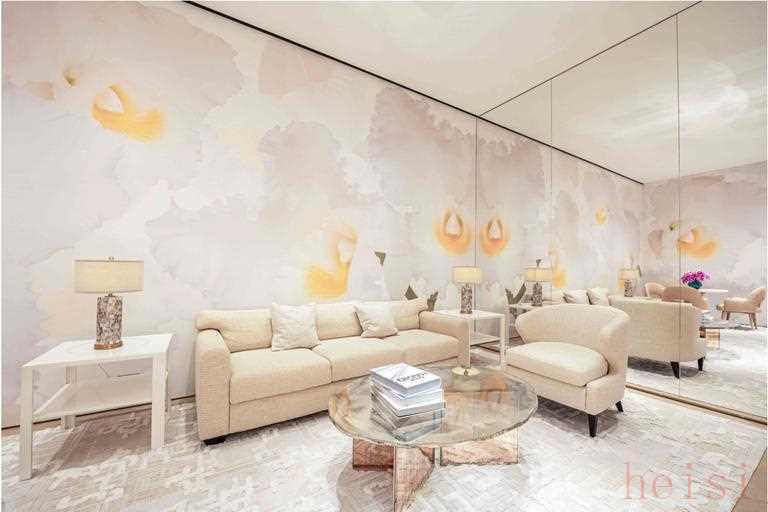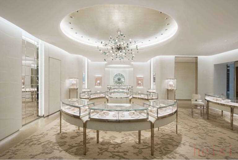 全新精品店特別設(shè)置私人沙龍空間,旨在為顧客提供舒適私密的購物體驗(yàn)。內(nèi)部整體飾以柔美蘭花壁畫,呈現(xiàn)出如同蒂芙尼珠寶般的精致氛圍。