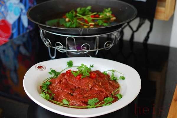 牛肉是來自湘西的小黃牛,切大片經(jīng)過秘方腌制,再在餐桌上一片片煎熟,沾上焦鹽味的辣椒,入口鮮香,回味悠長(zhǎng),大口吃肉,大碗喝酒的湘西民俗,你感受到了嗎?
