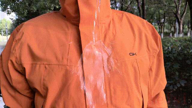 何止是防水,GaKior戶外沖鋒衣做到的是≥35000mm/H?O的暴雨級(jí)防水指數(shù),做一個(gè)潑灑的暴雨防水測(cè)試。