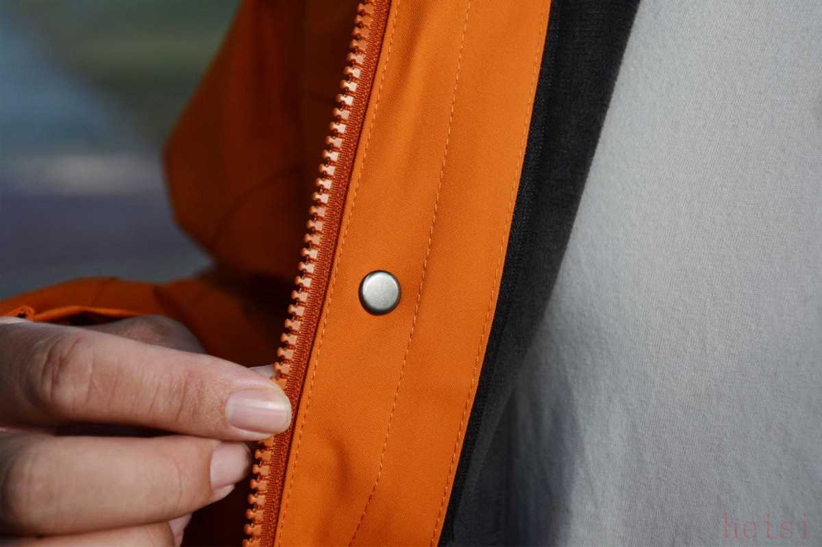 我個(gè)人比較喜歡鮮活一點(diǎn)的顏色,所以配色上選擇了橙色這個(gè)版本。實(shí)際上手,配色與官網(wǎng)呈現(xiàn)的基本沒(méi)有色差,而且穿上之后,發(fā)現(xiàn)橙色還挺稱我的膚色的。除了我選的橙色之外,GaKior戶外沖鋒衣還有經(jīng)典的黑色、灰色可選,大家可以根據(jù)自己的喜愛(ài)來(lái)選擇。