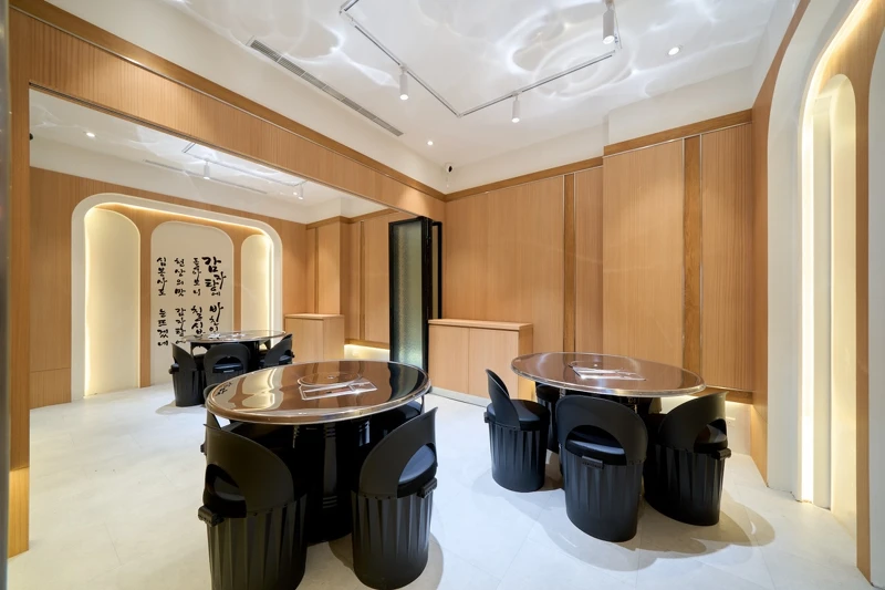 最后終于在2022年落腳臺北合江街,開幕第一年就創(chuàng)下年賣三座臺北101高度排骨的驚人紀(jì)錄。近日,宣布南下臺中拓點,并選在餐飲一級戰(zhàn)區(qū)公益路開設(shè)全新店鋪。整棟建筑從門口就營造出,外觀看似古樸韓屋,入內(nèi)卻是時髦的韓系空間。白墻、木桌、霓虹光影,彷彿走進(jìn)韓劇里的餐廳場景。店內(nèi)設(shè)有80個座位與五間包廂,門口還放置了復(fù)古拍照機(jī),讓等待的片刻多了一份儀式感,也替整體體驗增添了趣味。